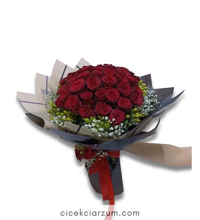 41 adet kırmızı gülden oluşan buket